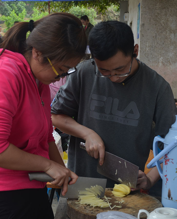 雖然上山的路有些不好走,但是林上科技的小伙伴還是互相扶持,一個都沒掉隊的走上了山頂。中午,自己動手享受農家樂,山頂上的農家樂都是客家的老房子,小伙伴們都一起洗菜,一起切菜,真是一副好景象。