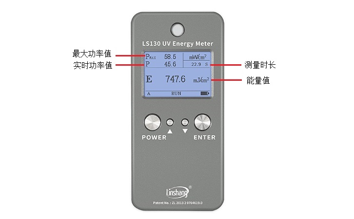 2.真正智能的UV能量計,可同時檢測UV強度與能量。智能統計功率實時值、功率最大值、能量值及測量時長,通過測量時長可精確了解UV固化時間的長短。