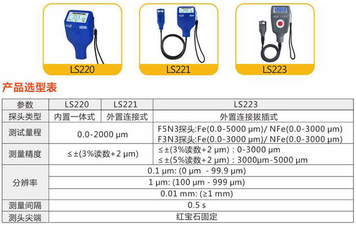 林上科技自主研發(fā)生產(chǎn)了3款涂層測厚儀,均為鐵鋁兩用型的儀器,具有三種測量模式,可自動(dòng)識(shí)別測量基材,并且儀器只有一個(gè)按鍵操作方法非常的簡單。3款涂層測厚儀,不同儀器的測量范圍都不一樣,滿足多種測量需求,最高可達(dá)5mm。(詳情見下圖。)