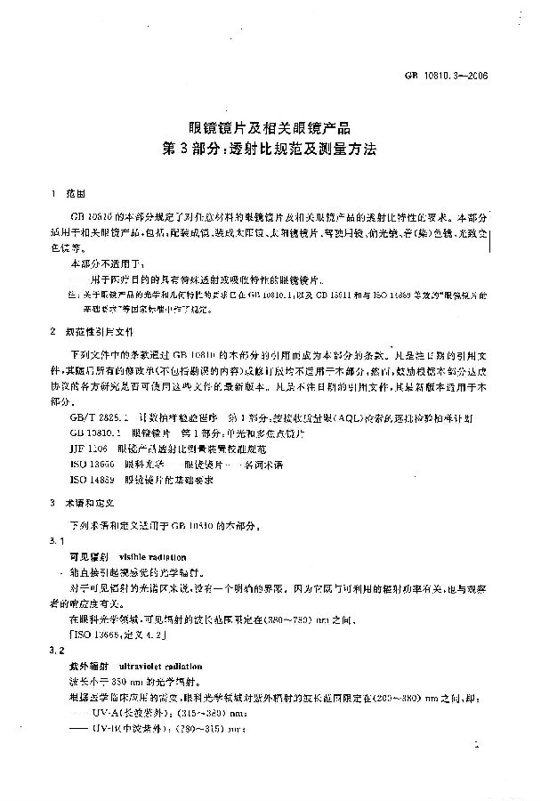眼鏡鏡片國家標(biāo)準(zhǔn)、行業(yè)標(biāo)準(zhǔn)
