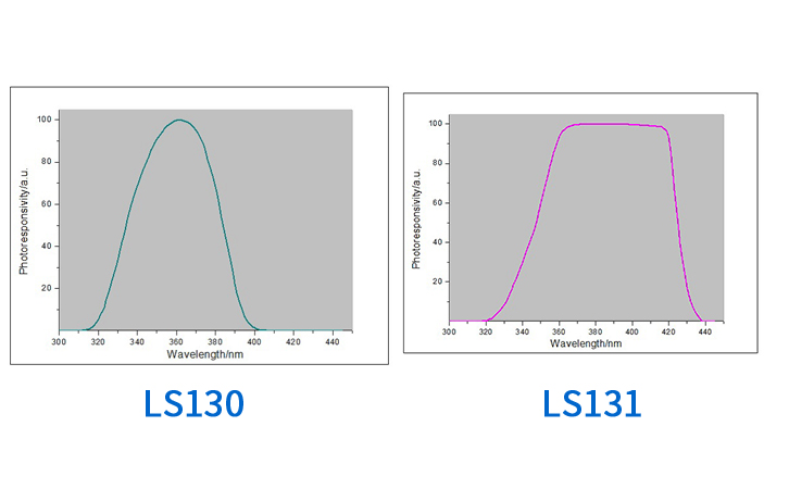 LS130UV能量計和LS131UV能量計的區別:光譜曲線不一樣。LS130UV能量計適合測量高壓汞燈,鹵素燈等光源中的紫外線強度和能量。LS131UV能量計適合測量UV LED光源的紫外線強度和能量。